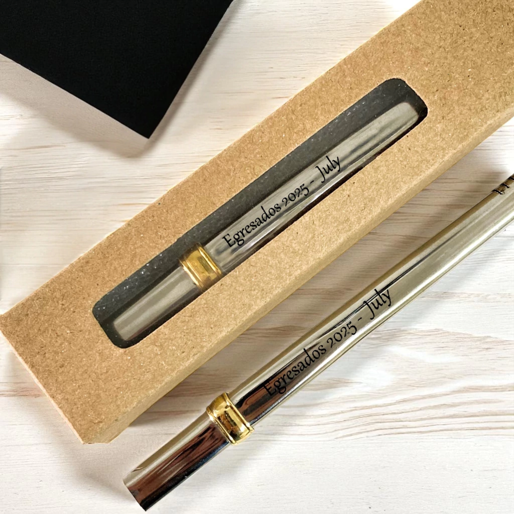 Bombilla chata de acero inoxidable de 17 cm de largo para egresados, personalizada con grabado láser