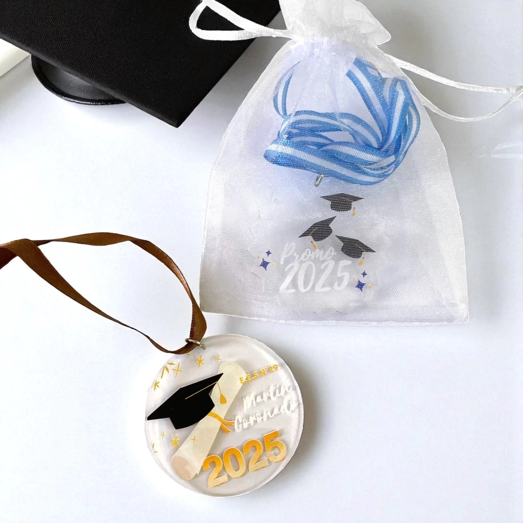 Medalla personalizada de acrílico para egresados, entregado con bolsa de organza o caja acrílica